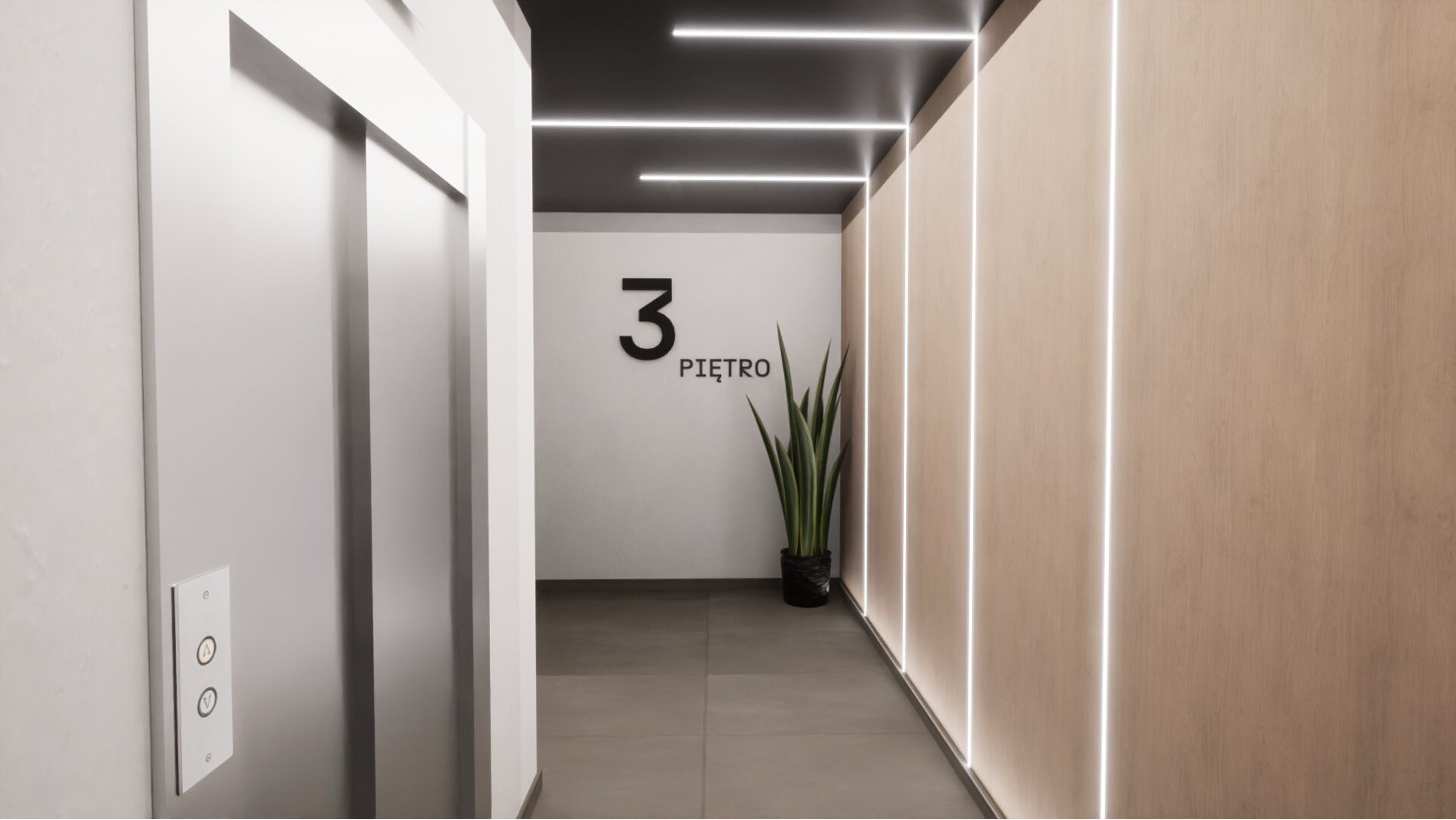 Mieszkania na końcach korytarzy: Projektowanie większych mieszkań na końcach korytarzy pozwala „skrócić” część wspólną i włączyć dojście do drzwi bezpośrednio do powierzchni lokalu.