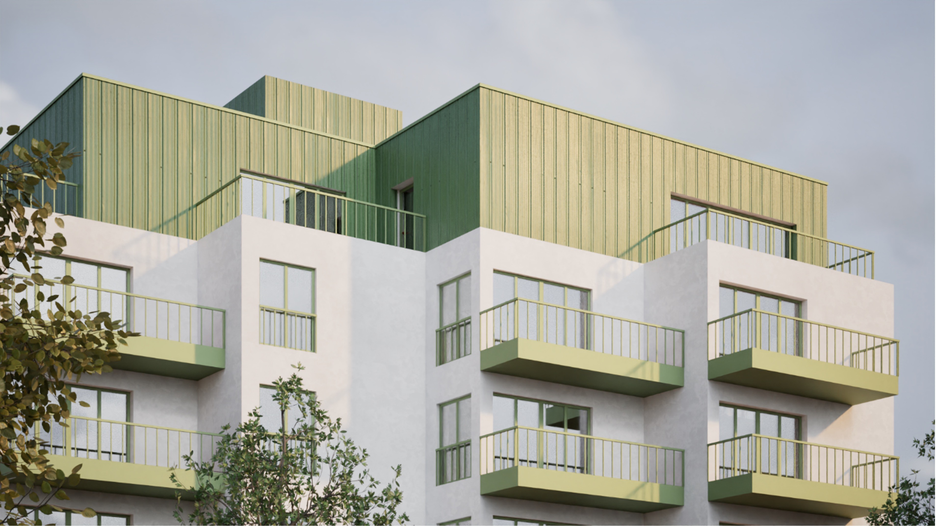 Geometria zamiast kątów prostych: Formowanie bryły pod odpowiednim kątem pozwala „złapać” więcej światła tam, gdzie standardowy prostopadłościan by zawiódł. Pozwala to mocniej „dociągnąć” budynek do granic działki. W projekcie akademików w Gliwicach w „trójkątach” na rzucie mieście się około 4500m2.