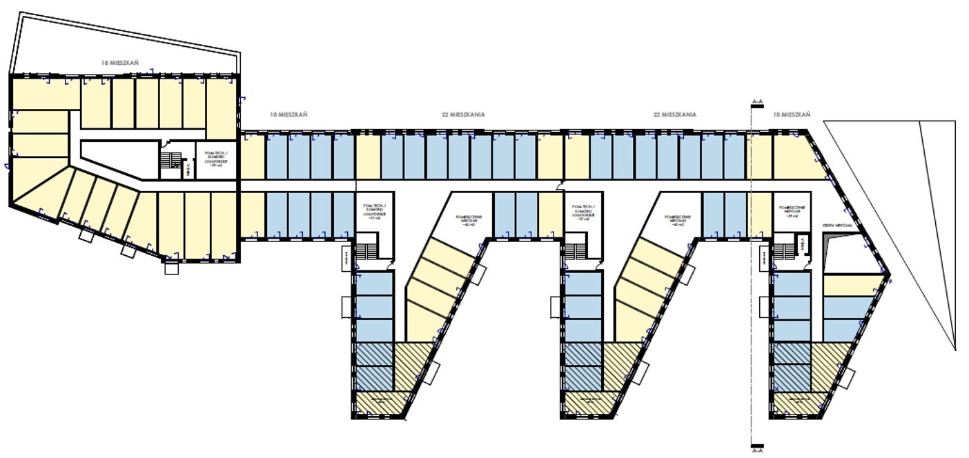 W jednym z naszych projektów w Katowicach, dzięki optymalizacji układu i struktury mieszkań, zmniejszyliśmy liczbę klatek schodowych z 3 do 2, co zwiększyło PUM o 512m2.